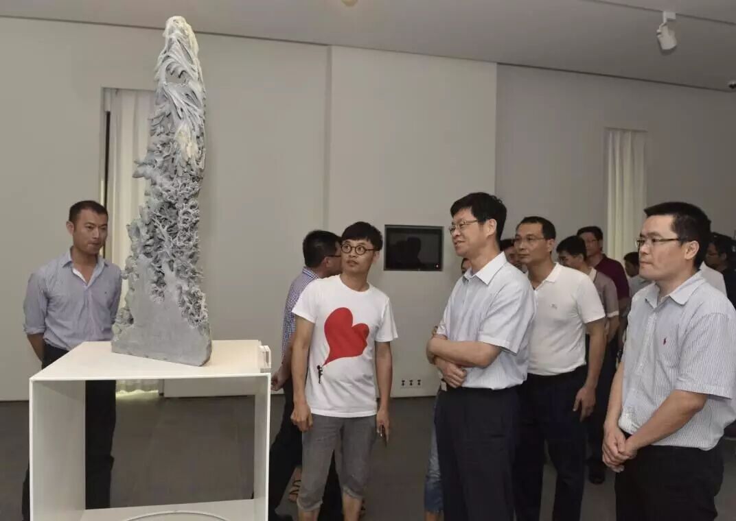 王向荣先生向康市长介绍了鼎立艺术馆开馆以来举办了多次大型的艺术展览活动,如首届“问石——中国当代国际石雕艺术邀请展”,有来自美国、法国、日本、韩国等国家艺术家的石雕作品在这里展出。康市长对这种具有国际性的石雕展表示肯定,他表示惠安县政府可以和艺术馆合作举办国际性的石雕艺术双年展活动等,并继续积极支持、帮助鼎立艺术馆举办公益性的艺术展览活动,双方要合作共建这个石雕艺术对外交流与展示平台,进一步扩大惠安石雕在国际上的影响力和知名度。
